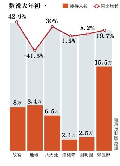 昨天是農(nóng)歷大年初一,“春節(jié)”假日第二天,記者從北京市假日辦獲悉,當(dāng)日,全市重點(diǎn)監(jiān)測的146家旅游景區(qū)共接待游客112.63萬人次,其中故宮博物院共接待8萬人次,同比增長42.9%;廟會等各類民俗活動共接待40.1萬人次。市屬11家公園及園博館共迎來游客25萬人次,同比去年增長11%。各公園開展了傳統(tǒng)園林賀歲、鮮花廟會及非遺技藝、經(jīng)典展陳等不同形式的游園活動,給來園市民游客拜大年、送福氣。