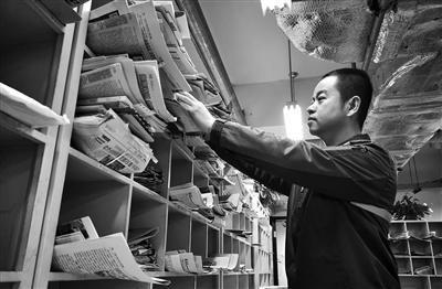 每天一上班,陳龍先將各類報刊和信件進(jìn)行整理 攝影/本報記者 柴程