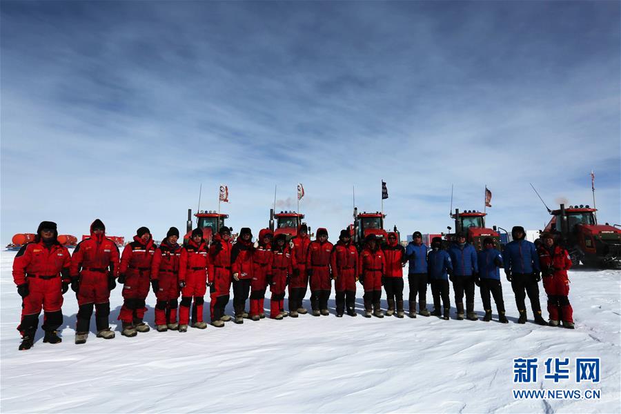 2月4日農(nóng)歷大年三十,部分內(nèi)陸隊(duì)員在南極冰蓋上合影。2月5日大年初一,中國第35次南極科學(xué)考察隊(duì)兩支內(nèi)陸隊(duì)——昆侖隊(duì)和泰山隊(duì)的37名隊(duì)員,繼續(xù)以中國南極中山站為目標(biāo),奔馳在茫茫的南極內(nèi)陸冰蓋上,在冰天雪地中度過了農(nóng)歷豬年第一天。新華社記者 劉詩平 攝
