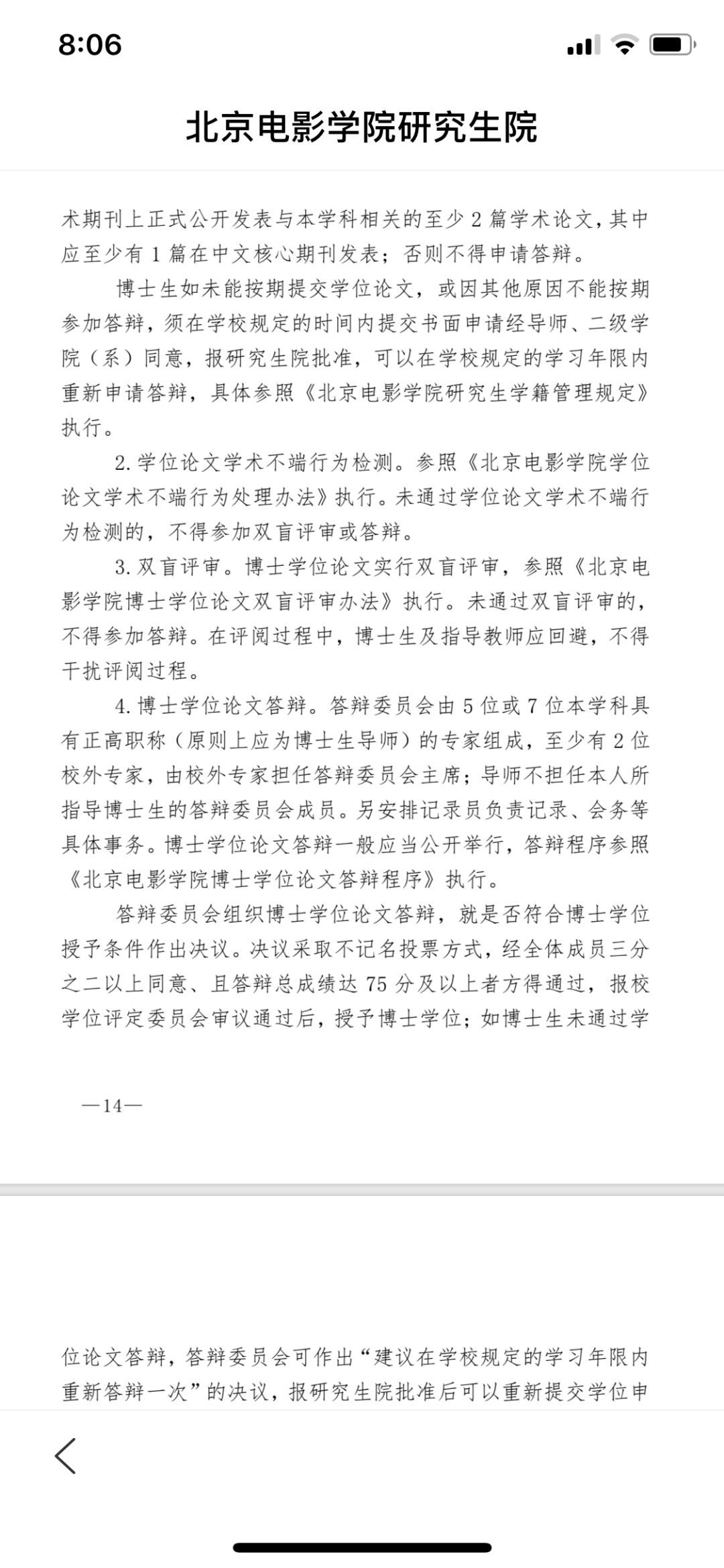 新聞縱橫編輯在北京電影學(xué)院的官網(wǎng)上,查到了博士學(xué)位申請(qǐng)的相關(guān)規(guī)定。翟天臨需要在答辯前,在國(guó)內(nèi)一級(jí)刊物或國(guó)際核心刊物上發(fā)表或被接受發(fā)表至少一篇入學(xué)后獨(dú)立撰寫的學(xué)術(shù)論文。寫出具有博士水平的學(xué)位論文;也就是說(shuō),他必須具有博士水平論文的寫作能力,由指導(dǎo)教師推薦,才能可提出學(xué)位申請(qǐng),這是第一步。