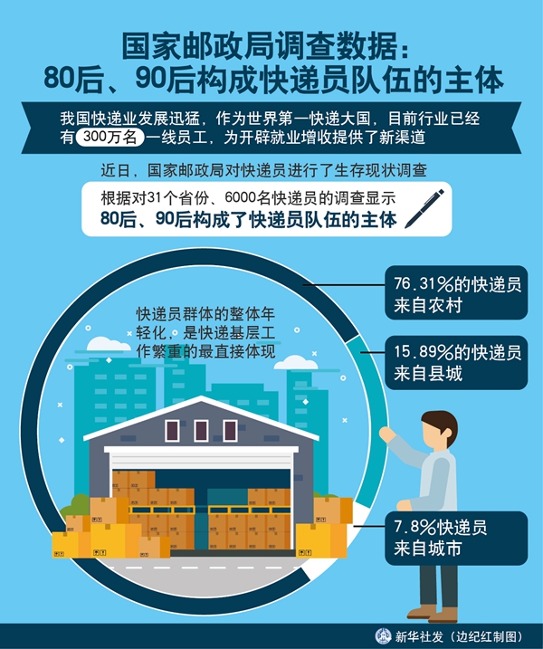 近日,國家郵政局對快遞員進(jìn)行了生存現(xiàn)狀調(diào)查,根據(jù)對31個(gè)省份、6000名快遞員的調(diào)查顯示,80后、90后構(gòu)成了快遞員隊(duì)伍的主體。快遞員群體的整體年輕化,是快遞基層工作繁重的最直接體現(xiàn)。76.31%的快遞員來自農(nóng)村,15.89%的快遞員來自縣城,僅有7.8%來自城市。
