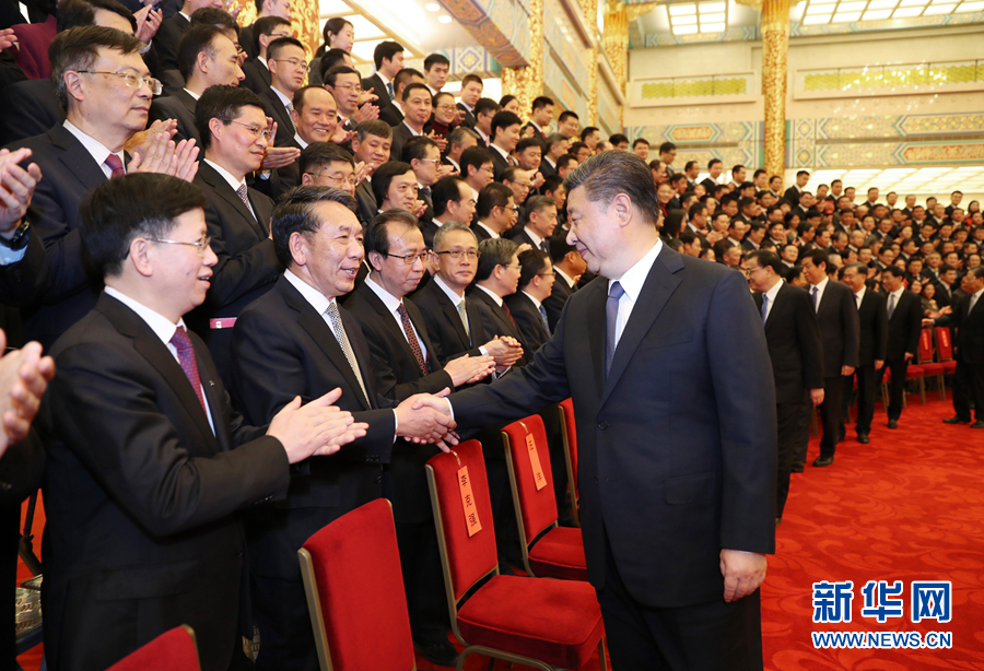 2月20日,黨和國(guó)家領(lǐng)導(dǎo)人習(xí)近平、李克強(qiáng)、栗戰(zhàn)書(shū)、汪洋、王滬寧、趙樂(lè)際、韓正等在北京人民大會(huì)堂會(huì)見(jiàn)探月工程嫦娥四號(hào)任務(wù)參研參試人員代表。習(xí)近平發(fā)表重要講話(huà)。 新華社記者黃敬文攝