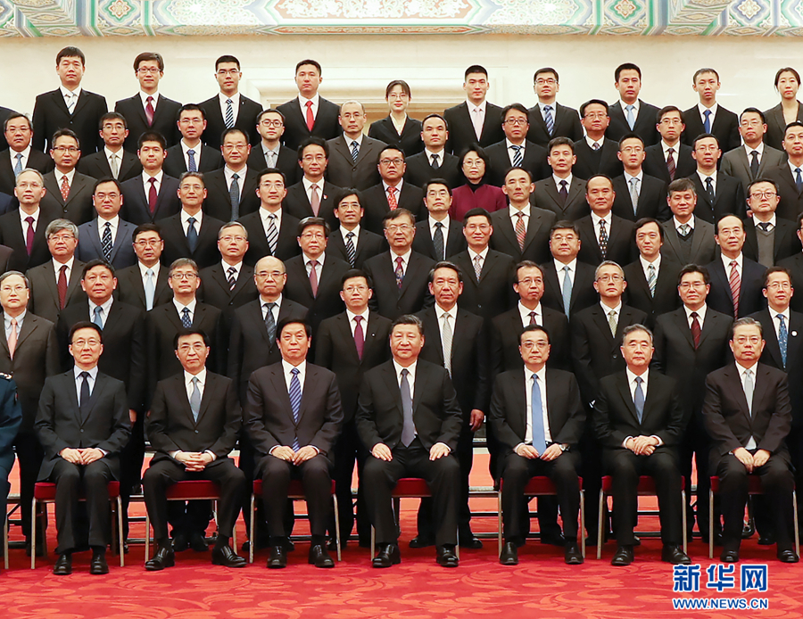 2月20日,黨和國(guó)家領(lǐng)導(dǎo)人習(xí)近平、李克強(qiáng)、栗戰(zhàn)書(shū)、汪洋、王滬寧、趙樂(lè)際、韓正等在北京人民大會(huì)堂會(huì)見(jiàn)探月工程嫦娥四號(hào)任務(wù)參研參試人員代表。 新華社記者鞠鵬攝