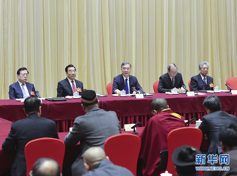 3月4日,中共中央政治局常委、全國政協(xié)主席汪洋看望出席全國政協(xié)十三屆二次會(huì)議的宗教界委員并參加討論。 新華社記者 姚大偉 攝
