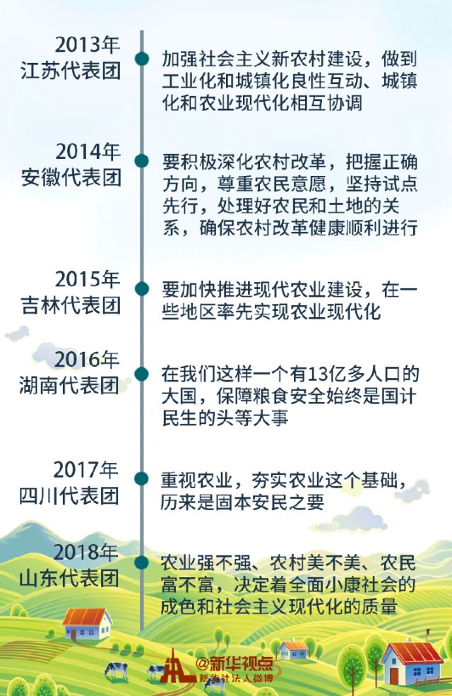 黨的十八大以來(lái),每年全國(guó)兩會(huì)期間下團(tuán)參加審議,習(xí)近平總書記都會(huì)談到“三農(nóng)”問(wèn)題。語(yǔ)重心長(zhǎng),充滿深情。