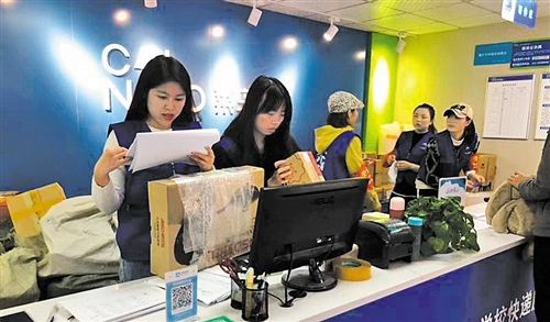 四川外國語大學綜合物流服務中心內,工作人員精準記錄著快遞末端的流通信息。吉蕾蕾 攝