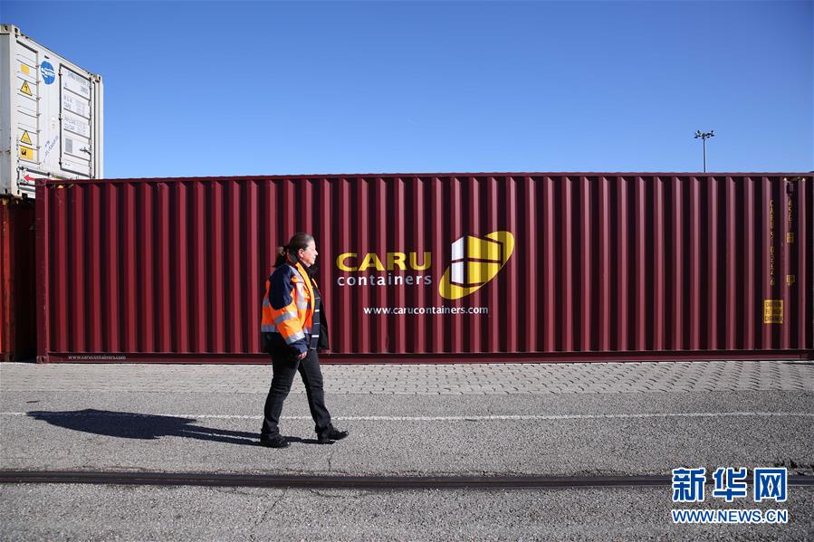 這是2019年3月5日,裝載有中國商品的集裝箱從中國武漢發(fā)出后,經(jīng)由中歐班列運輸?shù)诌_(dá)法國里昂。 新華社記者 唐霽 攝