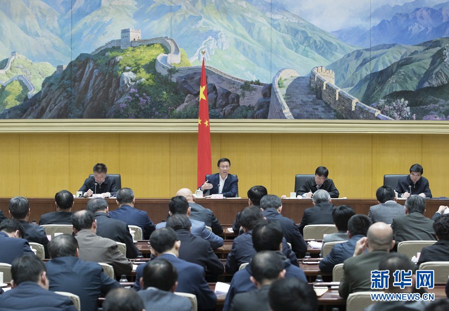 3月28日,中共中央政治局常委、國務(wù)院副總理韓正在北京出席全國工程建設(shè)項(xiàng)目審批制度改革工作電視電話會(huì)議并講話。 新華社記者王曄攝