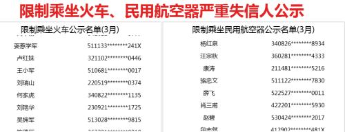 限制乘坐火車(chē)、民用航空器嚴(yán)重失信人公示。