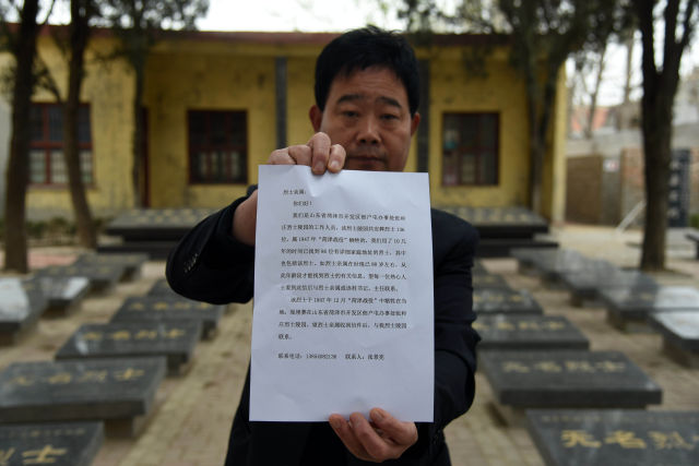 3月21日,張景憲在展示信件中的內(nèi)容。