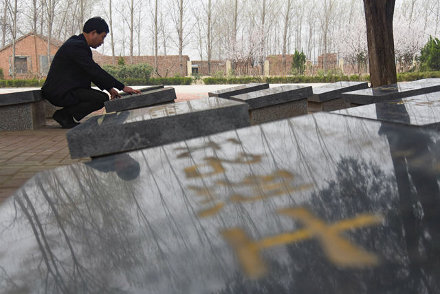 3月20日,張景憲在張和莊烈士陵園內(nèi)瞻仰。