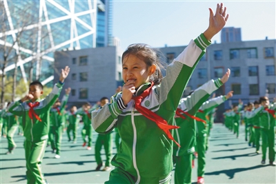 北京中小學課間操都跳些什么?記者走訪發(fā)現(xiàn),武術(shù)、跳繩等動作也出現(xiàn)在了課間操中。