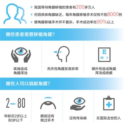 我國等待角膜移植的患者有200多萬人,但因供體角膜缺乏,每年角膜移植手術(shù)僅有不到8000例