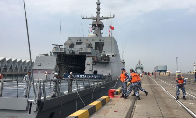 19日10時許,新加坡海軍“堅強”號護衛(wèi)艦緩緩駛入青島大港碼頭。這是參加中國人民解放軍海軍成立70周年多國海軍活動到訪的第一艘外國海軍艦艇。新華社記者梅世雄 攝
