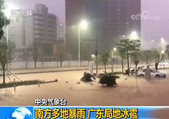 中央氣象臺監(jiān)測顯示,昨天廣東、廣西、福建、江西、湖南等地部分地區(qū)出現(xiàn)暴雨或大暴雨;廣東中部和珠江口附近還伴有8~10級雷暴大風,局地出現(xiàn)冰雹。