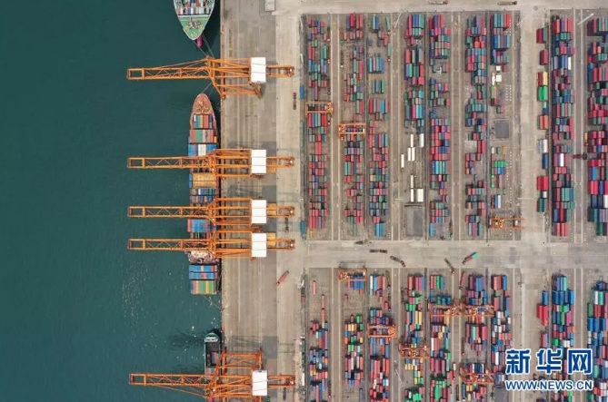圖為廣西欽州保稅港區(qū)碼頭(無人機拍攝)。新華社記者 曹祎銘 攝