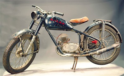 王進(jìn)喜“跑井”檢查工作時(shí)騎過的摩托車。鐵人王進(jìn)喜紀(jì)念館供圖