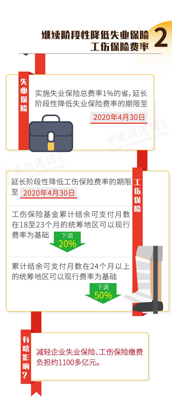 降費(fèi)率方面,一是降低城鎮(zhèn)職工基本養(yǎng)老保險(xiǎn)單位繳費(fèi)比例,高于16%的省份,可降至16%。二是繼續(xù)階段性降低失業(yè)保險(xiǎn)和工傷保險(xiǎn)費(fèi)率,現(xiàn)行的階段性降費(fèi)率政策到期后再延長(zhǎng)一年至2020年4月30日。