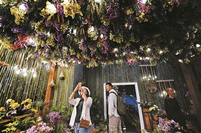 從北京世園會(huì)4號(hào)門(mén)進(jìn)入,即可體驗(yàn)“東線”游覽線路,涵蓋生活體驗(yàn)館、世界園藝展示區(qū)、國(guó)際館等主要場(chǎng)館和景區(qū)。昨天下午,北青報(bào)記者來(lái)到位于北京世園會(huì)東北部區(qū)域的生活體驗(yàn)館。剛一進(jìn)門(mén),眼前就浮現(xiàn)出一條“之”字形花田步道,參觀者可以自一樓沿坡道徐徐漫步至二樓,欣賞沿途不同主題的植物。步道兩側(cè)栽種著水仙、蝴蝶蘭、菊花等植物,還散落著不少用生活用品裝點(diǎn)的園藝小品,如小鞋子、小草帽、小木箱等。“我們通過(guò)這樣的布景方式,既體現(xiàn)綠色環(huán)保的生活理念,也是力求將園藝融入生活,體現(xiàn)‘愛(ài)園藝、愛(ài)生活’的美好主題?!鄙铙w驗(yàn)館館長(zhǎng)助理樊川介紹說(shuō)。
