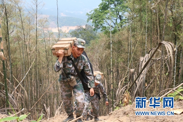 在云南麻栗坡,杜富國向雷場外轉(zhuǎn)運(yùn)炸藥(2015年4月26日攝)。?新華社發(fā)(黃巧 攝)