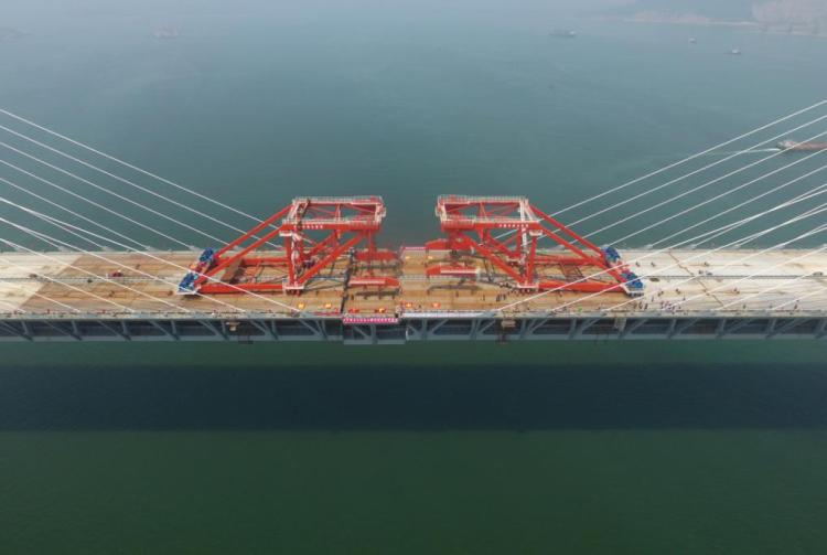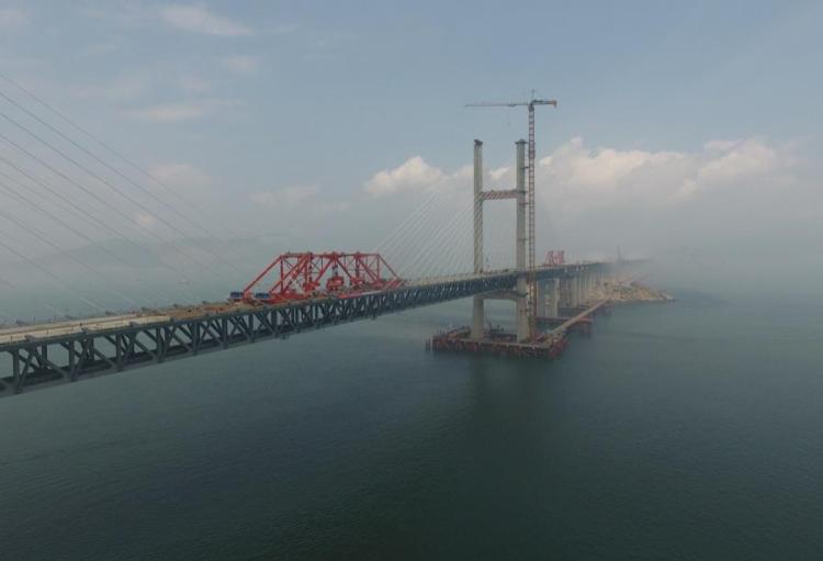6月5日,福平鐵路平潭海峽公鐵兩用大橋元洪航道橋主橋成功合龍。(新華社記者林善傳攝)