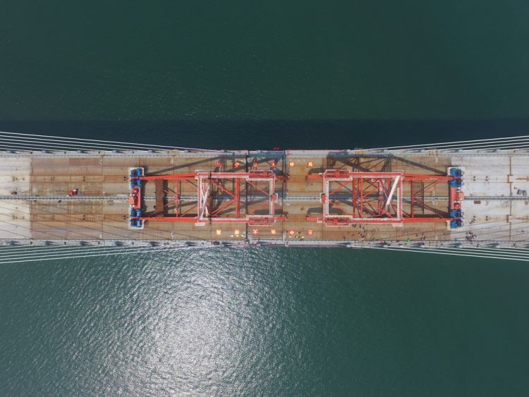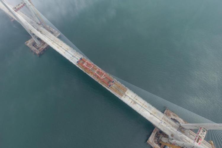 6月5日,福平鐵路平潭海峽公鐵兩用大橋元洪航道橋主橋成功合龍。(新華社記者林善傳 攝)