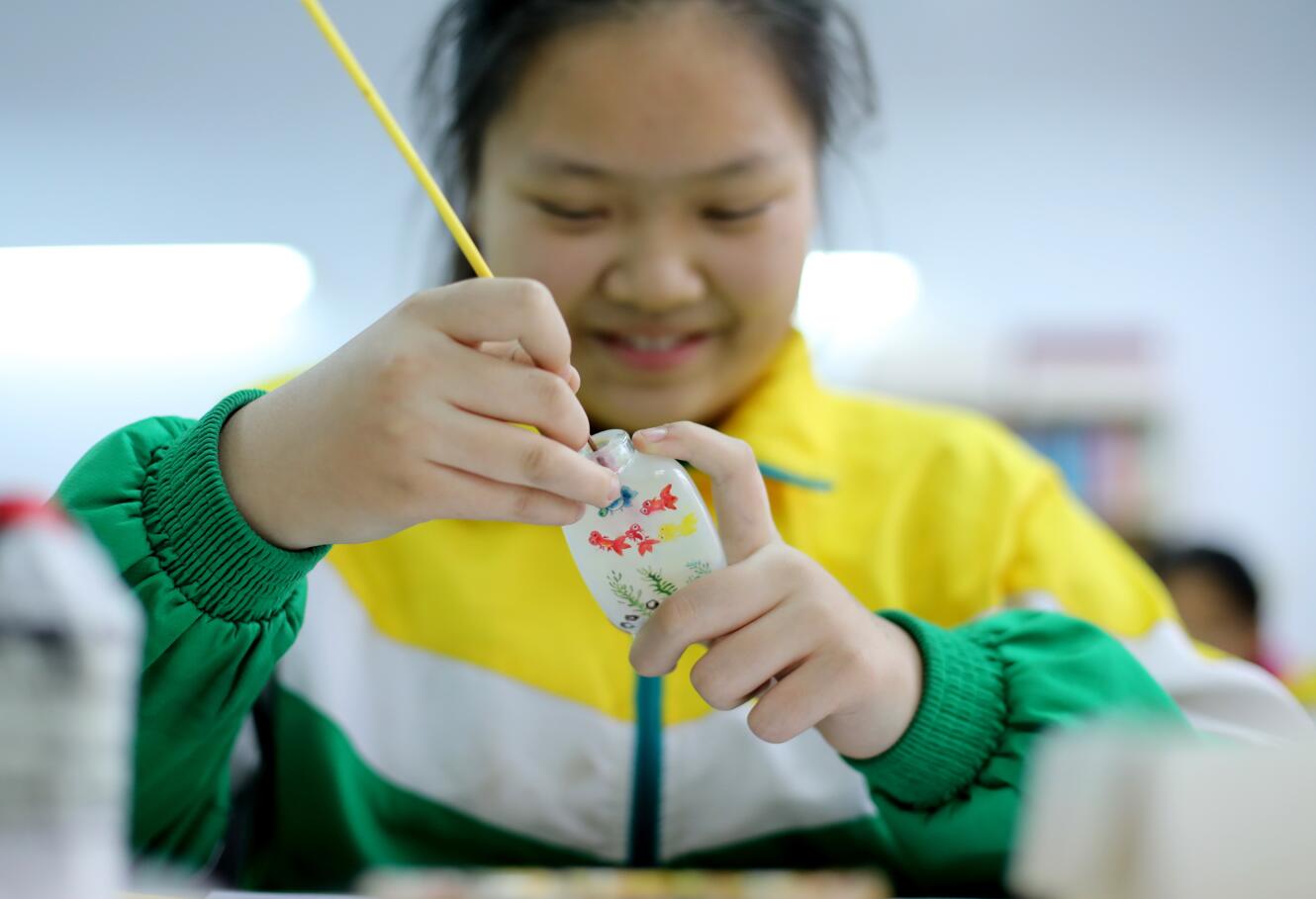近年來(lái),河北省衡水市珍寶街小學(xué)將當(dāng)?shù)氐膰?guó)家級(jí)非物質(zhì)文化遺產(chǎn)項(xiàng)目衡水內(nèi)畫(huà)引入校園,開(kāi)設(shè)校本課程,并成立“內(nèi)畫(huà)工藝坊”興趣社團(tuán),在豐富校園文化生活的同時(shí),讓學(xué)生們近距離感受非遺的魅力,弘揚(yáng)和傳承傳統(tǒng)文化。