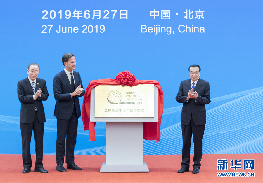 6月27日,國務(wù)院總理李克強在北京人民大會堂同荷蘭首相呂特、聯(lián)合國前秘書長潘基文共同出席全球適應(yīng)中心中國辦公室揭牌儀式。新華社記者 王曄 攝