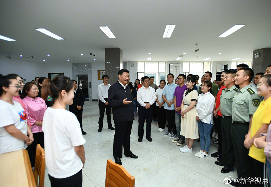 16日上午,正在內(nèi)蒙古考察調(diào)研的習(xí)近平總書記來到內(nèi)蒙古大學(xué),走進圖書館同學(xué)生們親切交談。習(xí)近平指出,少年強則中國強??吹侥昵嗳私】德斆?、奮發(fā)向上,充滿正能量,心里十分高興。長江后浪推前浪,青出于藍而勝于藍,未來是屬于年青人的。在中華民族偉大復(fù)興的進程中,你們生逢其時,何其幸也。再過30年,到本世紀中葉實現(xiàn)第二個百年奮斗目標(biāo)的時候,你們正好是國家的骨干和棟梁。大家要志存高遠、腳踏實地,學(xué)好知識,打好基礎(chǔ),增長才干,將來為中華民族偉大復(fù)興貢獻自己的智慧和力量。 (文字:張曉松、朱基釵 攝影:謝環(huán)馳、李學(xué)仁)