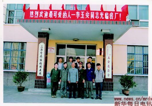 ▲這是李玉安生前到工廠作報(bào)告的照片(翻拍照片)。 新華社記者何山攝