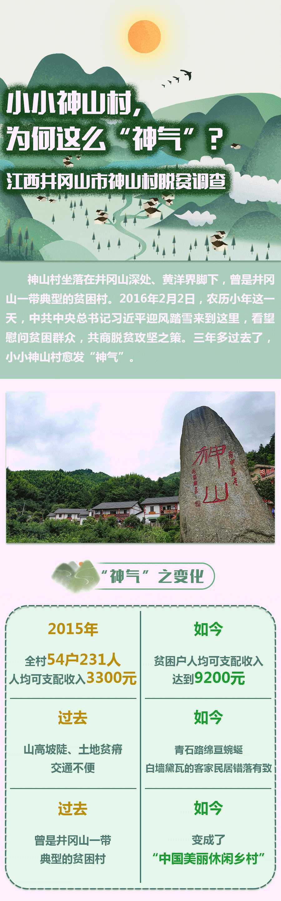 小小神山村,像這樣的故事還很多。在跨越時(shí)空的井岡山精神鼓舞下,神山村正闊步行進(jìn)在新時(shí)代鄉(xiāng)村振興的大路上,必將書(shū)寫(xiě)更多新的“神氣”故事。