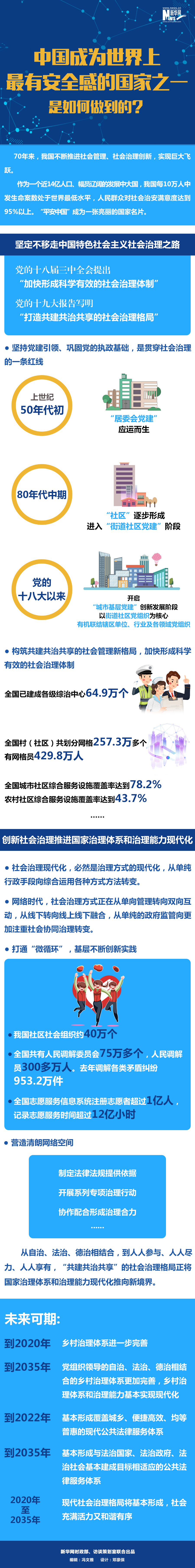 70年篳路藍(lán)縷,70年櫛風(fēng)沐雨。新中國持續(xù)推進(jìn)社會領(lǐng)域變革、堅(jiān)定走向社會治理現(xiàn)代化,呈現(xiàn)出經(jīng)濟(jì)持續(xù)健康發(fā)展、社會大局穩(wěn)定的良好局面。中國成為世界上最有安全感的國家之一。