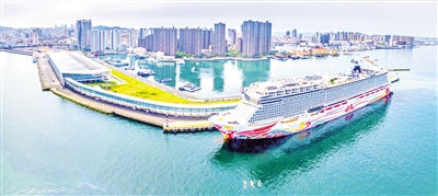 一艘郵輪??吭谏綎|港口集團(tuán)青島國際郵輪母港。(資料照片)