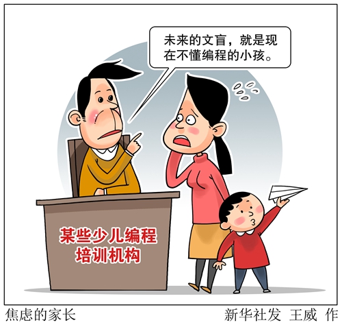 “未來的文盲,就是現(xiàn)在不懂編程的小孩”“不會(huì)寫代碼就喪失了網(wǎng)絡(luò)生存能力”……近來,大量引發(fā)家長焦慮感的少兒編程廣告,充斥于自媒體和公共場所?!靶氯A視點(diǎn)”記者調(diào)查發(fā)現(xiàn),繼奧數(shù)、英語之后,少兒編程成為最新教育培訓(xùn)熱點(diǎn)。少兒編程如此火爆,誰是幕后推手?家長是否應(yīng)該讓孩子學(xué)編程?