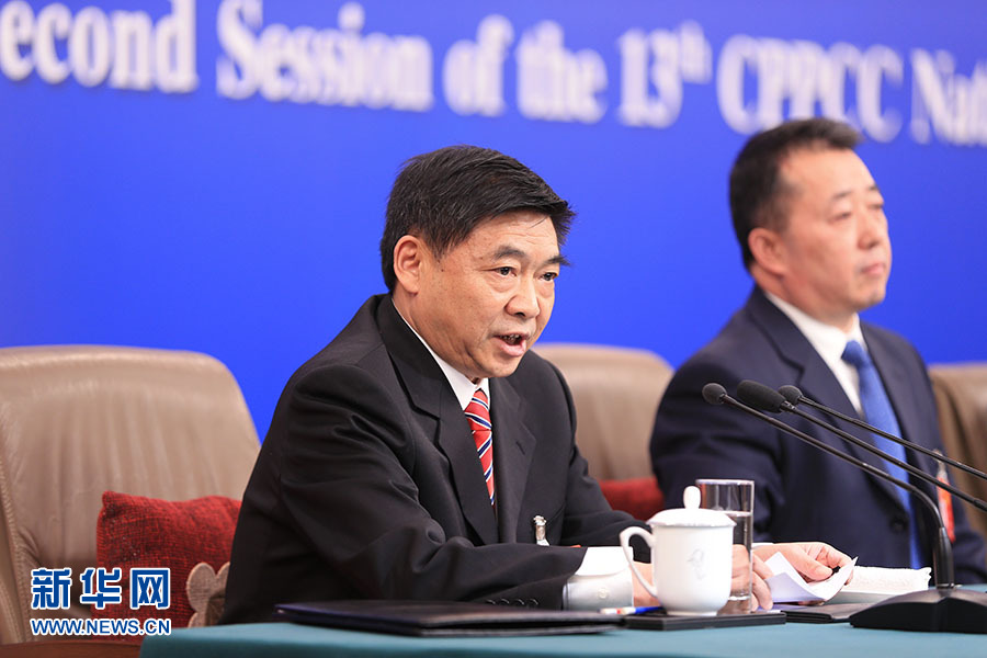 全國政協(xié)十三屆二次會議3月5日15:00在梅地亞中心多功能廳舉行記者會,邀請5位全國政協(xié)委員就“打贏防范化解重大風(fēng)險、精準(zhǔn)脫貧、污染防治三大攻堅(jiān)戰(zhàn)”回答記者提問。圖為主持人舒啟明。新華網(wǎng)/中國政府網(wǎng) 劉廈 攝