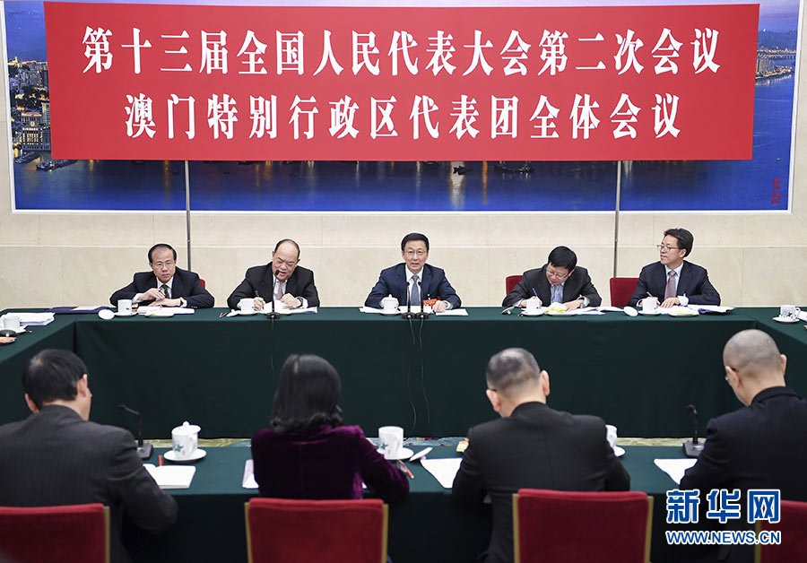 3月6日,中共中央政治局常委、國務院副總理韓正參加十三屆全國人大二次會議澳門代表團的審議。 新華社記者 張領 攝