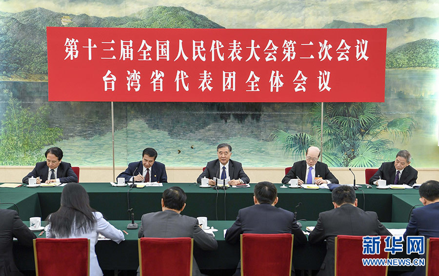 汪洋分別參加臺灣代表團(tuán)、云南代表團(tuán)審議。在臺灣代表團(tuán),汪洋在認(rèn)真聽取符之冠、陳云英、陳軍等代表發(fā)言后指出,習(xí)近平總書記在《告臺灣同胞書》發(fā)表40周年紀(jì)念會上的重要講話,是指引新時(shí)代對臺工作的綱領(lǐng)性文獻(xiàn)。要學(xué)深悟透講話的精神實(shí)質(zhì)和核心要義,深刻認(rèn)識兩岸統(tǒng)一是歷史大勢,牢牢把握對臺工作正確方向。要廣泛深入聽取臺灣同胞的意見,完善配套政策,把促進(jìn)兩岸經(jīng)濟(jì)文化交流合作“31條措施”等惠臺舉措落到實(shí)處,深化兩岸融合發(fā)展。要堅(jiān)持一個(gè)中國原則和“九二共識”,堅(jiān)決反對“臺獨(dú)”,團(tuán)結(jié)更多臺灣同胞共擔(dān)民族大義,為推動兩岸關(guān)系和平發(fā)展、推進(jìn)祖國和平統(tǒng)一進(jìn)程作出更大貢獻(xiàn)。在云南代表團(tuán),汪洋認(rèn)真聽取阮成發(fā)、馬正山、玉龍等代表的發(fā)言,充分肯定過去一年云南改革發(fā)展取得的成績。他希望云南深入貫徹習(xí)近平總書記對云南工作的重要指示精神,堅(jiān)定不移落實(shí)黨的民族政策和宗教工作基本方針,大力幫助人口較少民族和“直過民族”發(fā)展,努力打造民族團(tuán)結(jié)進(jìn)步示范區(qū)。要堅(jiān)決打好脫貧攻堅(jiān)戰(zhàn),努力攻克深度貧困堡壘,著力提高脫貧質(zhì)量,確保全面小康路上一個(gè)都不掉隊(duì)。