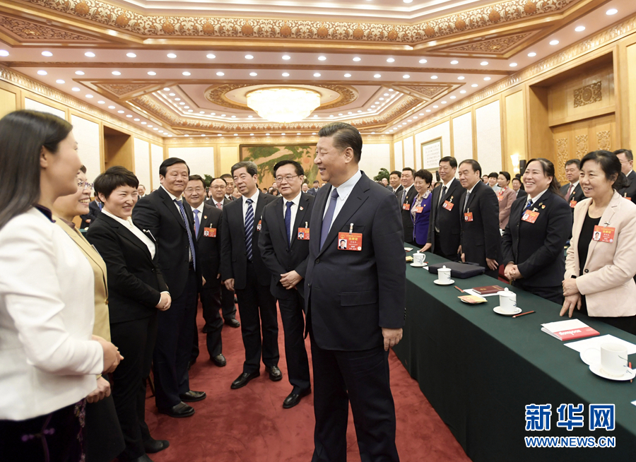 3月8日,中共中央總書記、國家主席、中央軍委主席習近平參加十三屆全國人大二次會議河南代表團的審議。在“三八”國際勞動婦女節(jié)到來之際,習近平代表黨中央,向參加全國兩會的女代表、女委員、女工作人員,向全國各族各界婦女,致以節(jié)日的祝賀和美好的祝福。這是習近平同女代表親切交談。新華社記者 李學仁 攝