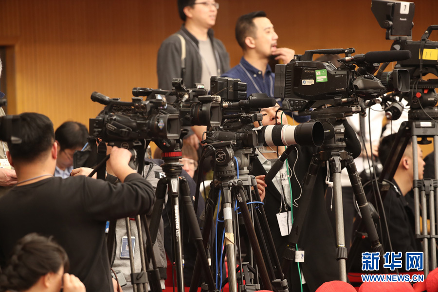 十三屆全國(guó)人大二次會(huì)議新聞中心3月8日10時(shí)在梅地亞中心新聞發(fā)布廳舉行記者會(huì),邀請(qǐng)國(guó)務(wù)委員兼外交部長(zhǎng)王毅就“中國(guó)外交政策和對(duì)外關(guān)系”相關(guān)問(wèn)題回答中外記者提問(wèn)。圖為記者在現(xiàn)場(chǎng)準(zhǔn)備。新華網(wǎng)/中國(guó)政府網(wǎng) 陳杰 攝
