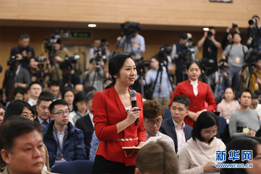 十三屆全國人大二次會議新聞中心3月9日(星期六)10時30分在梅地亞中心新聞發(fā)布廳舉行記者會,邀請商務(wù)部部長鐘山、副部長兼國際貿(mào)易談判副代表王受文、副部長錢克明就“促進形成強大國內(nèi)市場 推動全方位對外開放”相關(guān)問題回答中外記者提問。圖為中國國際電視臺CGTN記者提問。新華網(wǎng)/中國政府網(wǎng) 劉廈?攝