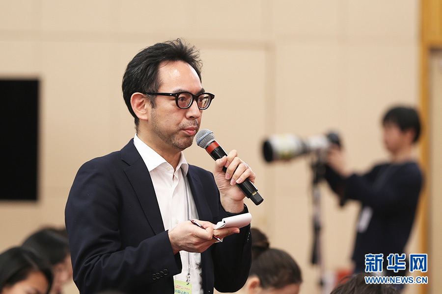 十三屆全國人大二次會議新聞中心3月9日(星期六)15時在梅地亞中心新聞發(fā)布廳舉行記者會,邀請國務院國資委主任肖亞慶,副主任翁杰明,秘書長、新聞發(fā)言人彭華崗就“國有企業(yè)改革發(fā)展”相關問題回答中外記者提問。圖為日本共同社記者提問。新華網(wǎng)/中國政府網(wǎng) 劉廈 攝
