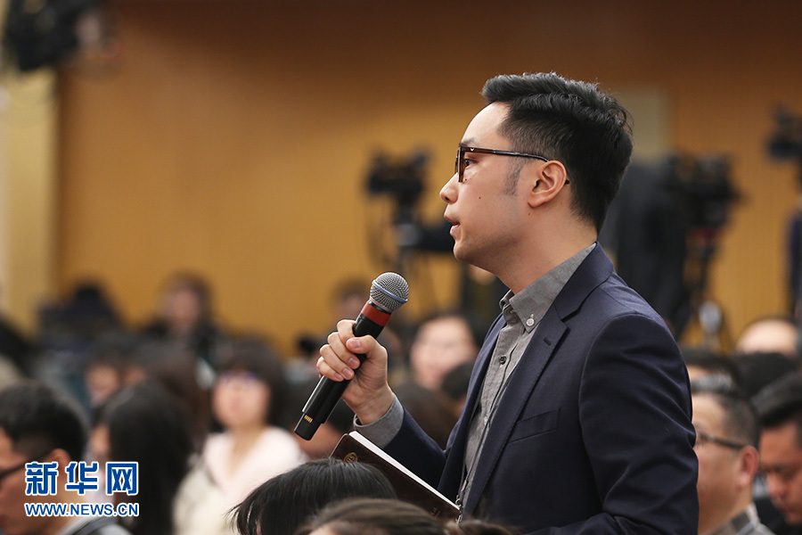 十三屆全國人大二次會議新聞中心3月9日(星期六)15時在梅地亞中心新聞發(fā)布廳舉行記者會,邀請國務(wù)院國資委主任肖亞慶,副主任翁杰明,秘書長、新聞發(fā)言人彭華崗就“國有企業(yè)改革發(fā)展”相關(guān)問題回答中外記者提問。圖為中國新聞社記者提問。新華網(wǎng)/中國政府網(wǎng) 劉廈 攝