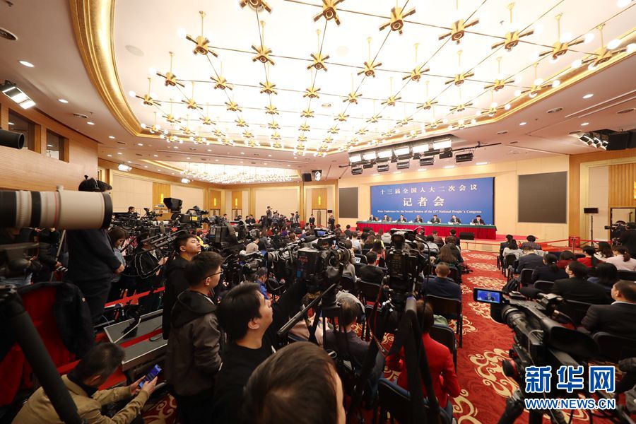 十三屆全國人大二次會議新聞中心3月9日在梅地亞中心新聞發(fā)布廳舉行記者會,邀請全國人大農(nóng)業(yè)與農(nóng)村委員會主任委員陳錫文、全國人大財政經(jīng)濟(jì)委員會副主任委員烏日圖、全國人大常委會法制工作委員會副主任劉俊臣、全國人大常委會法制工作委員會副主任許安標(biāo)、全國人大環(huán)境與資源保護(hù)委員會委員程立峰就“人大立法工作”相關(guān)問題回答記者提問。圖為記者會現(xiàn)場。新華網(wǎng)/中國政府網(wǎng) 陳杰 攝