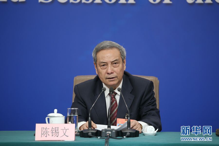 十三屆全國人大二次會議新聞中心3月9日在梅地亞中心新聞發(fā)布廳舉行記者會,邀請全國人大農(nóng)業(yè)與農(nóng)村委員會主任委員陳錫文、全國人大財政經(jīng)濟(jì)委員會副主任委員烏日圖、全國人大常委會法制工作委員會副主任劉俊臣、全國人大常委會法制工作委員會副主任許安標(biāo)、全國人大環(huán)境與資源保護(hù)委員會委員程立峰就“人大立法工作”相關(guān)問題回答記者提問。圖為全國人大農(nóng)業(yè)與農(nóng)村委員會主任委員陳錫文。新華網(wǎng)/中國政府網(wǎng) 劉廈 攝