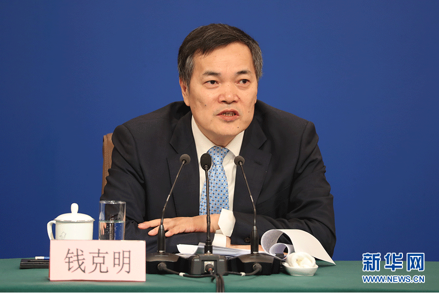 十三屆全國人大二次會議新聞中心3月9日(星期六)10時30分在梅地亞中心新聞發(fā)布廳舉行記者會,邀請商務部部長鐘山、副部長兼國際貿易談判副代表王受文、副部長錢克明就“促進形成強大國內市場 推動全方位對外開放”相關問題回答中外記者提問。圖為錢克明回答記者提問。新華網/中國政府網 陳杰 攝