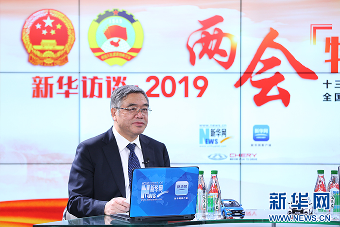 3月12日,全國政協(xié)常委兼副秘書長、民進(jìn)中央副主席朱永新做客新華網(wǎng)2019全國兩會特別報道。 新華網(wǎng) 陳延特 攝