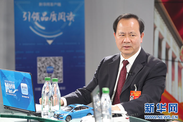 3月13日, 全國政協(xié)委員,廣西民族大學(xué)黨委副書記、校長謝尚果做客新華網(wǎng)2019全國兩會(huì)特別報(bào)道。 新華網(wǎng) 郭小天 攝