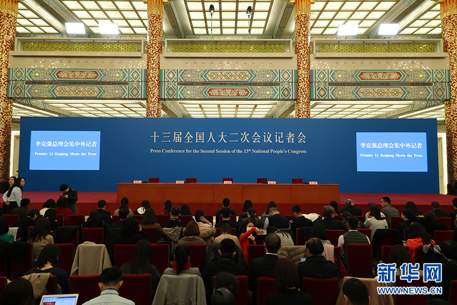3月15日上午十三屆全國人大二次會議閉幕后,國務院總理李克強在人民大會堂三樓金色大廳會見采訪十三屆全國人大二次會議的中外記者并回答記者提出的問題。圖為記者會現(xiàn)場。新華網(wǎng)/中國政府網(wǎng) 劉廈 攝