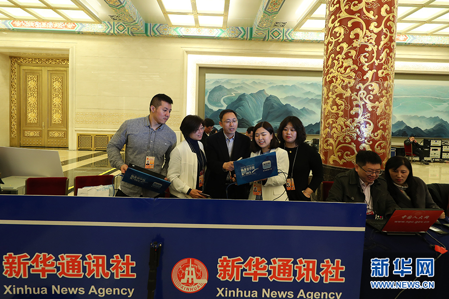 3月15日上午十三屆全國人大二次會議閉幕后,國務(wù)院總理李克強(qiáng)在人民大會堂三樓金色大廳會見采訪十三屆全國人大二次會議的中外記者并回答記者提出的問題。圖為新華網(wǎng)記者在做直播準(zhǔn)備。新華網(wǎng)/中國政府網(wǎng) 劉廈 攝