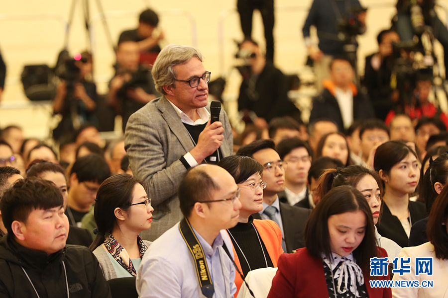 3月15日上午十三屆全國人大二次會議閉幕后,國務(wù)院總理李克強在人民大會堂三樓金色大廳會見采訪十三屆全國人大二次會議的中外記者并回答記者提出的問題。圖為西班牙記者提問。新華網(wǎng)/中國政府網(wǎng)?陳杰 攝